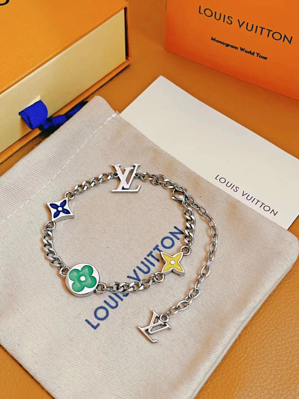 Please note: Louis Vuitton LV Monogram Row Bracelet is a premium, non-branded pieces inspired by iconic designs and are not affiliated with any official brand.