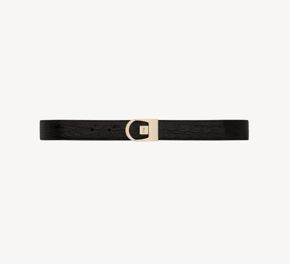 Product Details: Saint Laurent reversible belt in crocodile-embossed leather
