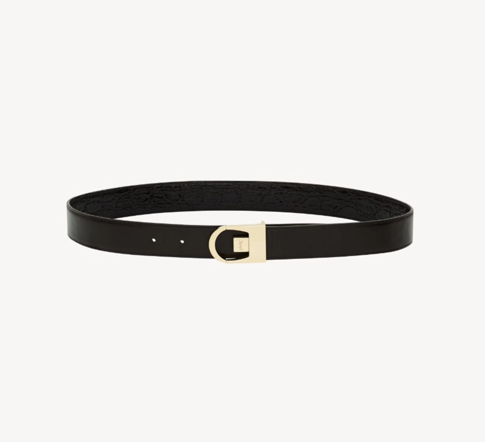 Please note: Saint Laurent reversible belt in crocodile-embossed leather is a premium, non‑branded piece inspired by iconic designs and is not affiliated with any official brand.